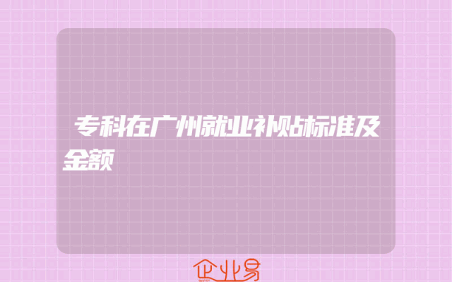 - 专科在广州就业补贴标准及金额