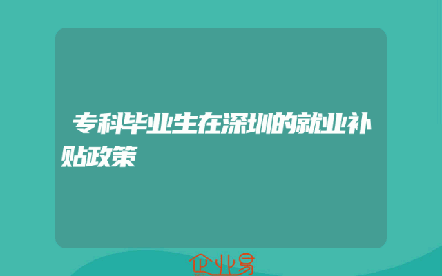 - 专科毕业生在深圳的就业补贴政策