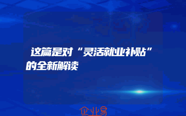 - 这篇是对“灵活就业补贴”的全新解读