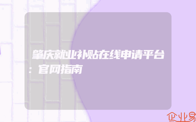- 肇庆就业补贴在线申请平台:官网指南