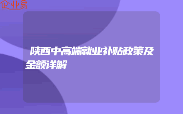 - 陕西中高端就业补贴政策及金额详解