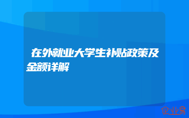 - 在外就业大学生补贴政策及金额详解