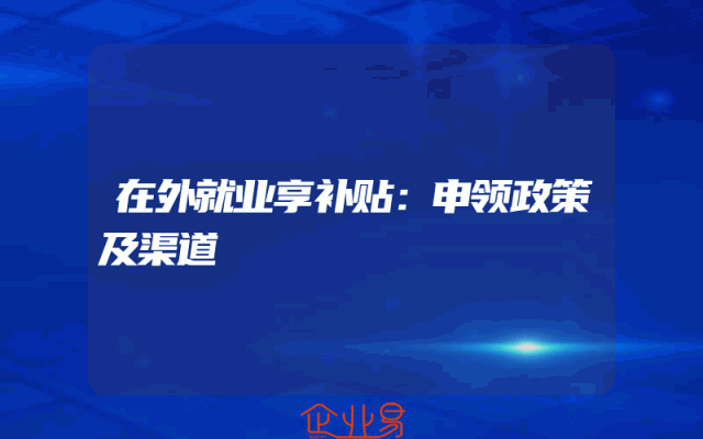 - 在外就业享补贴:申领政策及渠道