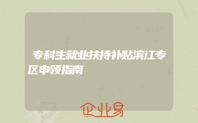 - 专科生就业扶持补贴滨江专区申领指南
