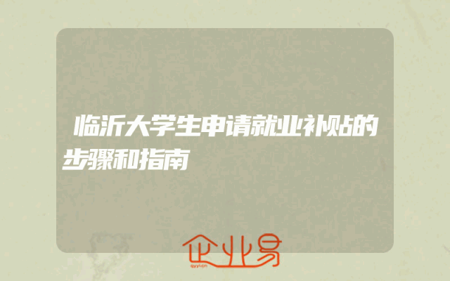 - 临沂大学生申请就业补贴的步骤和指南一、了解就业补贴政策临沂市政府为了鼓励大学生积极就业,出台了一系列的就业补贴政策。作为即将申请的大学生,首先需要了解这些政策的具体内容和申请条件。可以通过浏览临沂市人力资源和社会保障局的官方网站、公