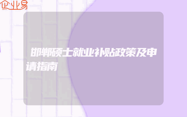- 邯郸硕士就业补贴政策解析及申请指南一、邯郸硕士就业补贴政策概述随着经济社会的发展,邯郸市为了吸引更多的高素质人才来本地就业,推出了一系列的优惠政策,其中就包括硕士就业补贴。该政策旨在鼓励硕士毕业生在邯郸就业,为他们的职业发展提供强有力的支持