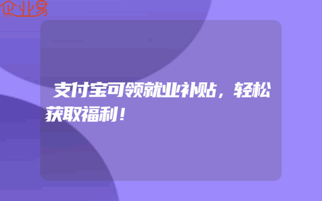 - 支付宝可领就业补贴,轻松获取福利!政策解读:支付宝就业补贴的概述在当今数字化时代,支付宝已成为我们生活中不可或缺的一部分。除了提供便捷的支付服务外,支付宝还积极响应国家政策,推出了就业补贴的福利。这是一项针对就业市场的利好政策,通过支付宝平