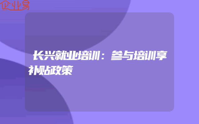 - 长兴就业培训:参与培训享补贴政策
