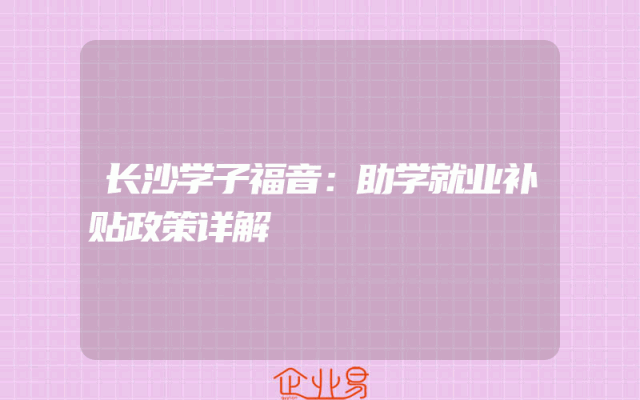 - 长沙学子福音:助学就业补贴政策详解