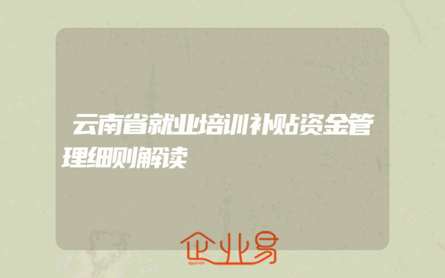 - 云南省就业培训补贴资金管理细则解读