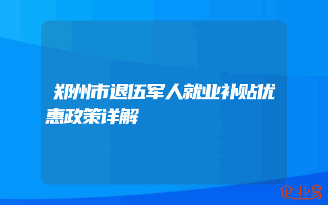 - 郑州市退伍军人就业补贴优惠政策详解