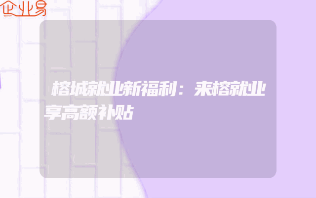 - 榕城就业新福利:来榕就业享高额补贴