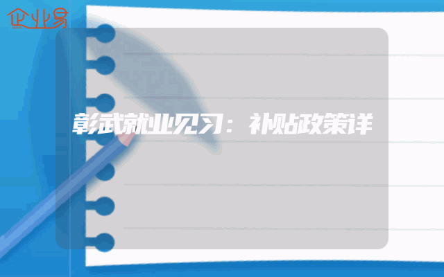 - 彰武就业见习:补贴政策详