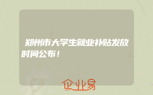 - 郑州市大学生就业补贴发放时间公布!