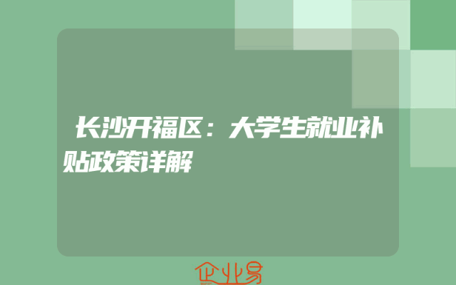 - 长沙开福区大学生就业补贴政策详解一、政策背景及概述随着经济的发展和社会的进步,大学生就业问题越来越受到关注。长沙开福区作为湖南省的重要经济区域,一直致力于优化就业环境,吸引更多优秀人才来区发展。针对当前大学生就业压力,开福区政府出台了一系列