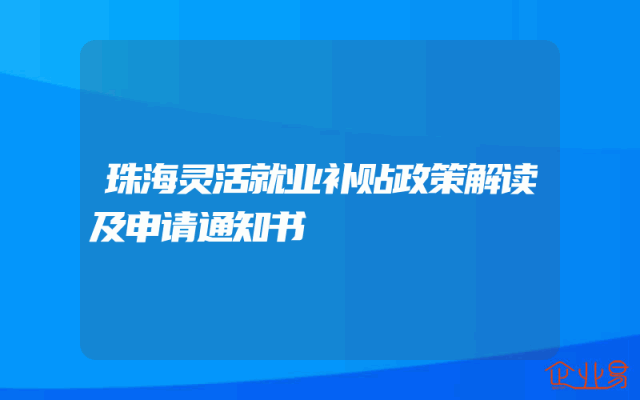 - 珠海灵活就业补贴政策解读及申请通知书