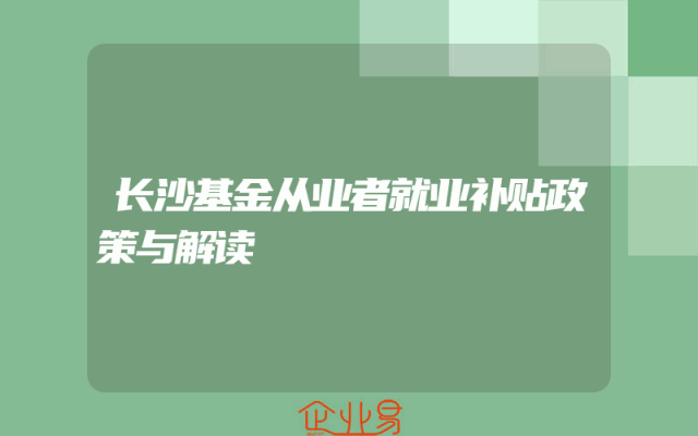 - 长沙基金从业者就业补贴政策与解读