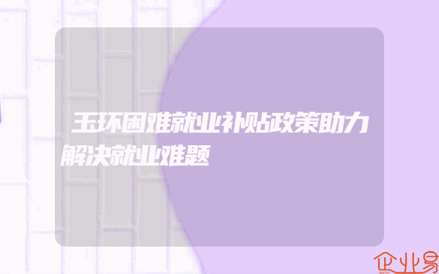 - 玉环困难就业补贴政策助力解决就业难题