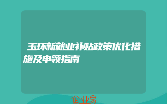- 玉环新就业补贴政策优化措施及申领指南