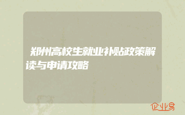 - 郑州高校生就业补贴政策解读与申请攻略