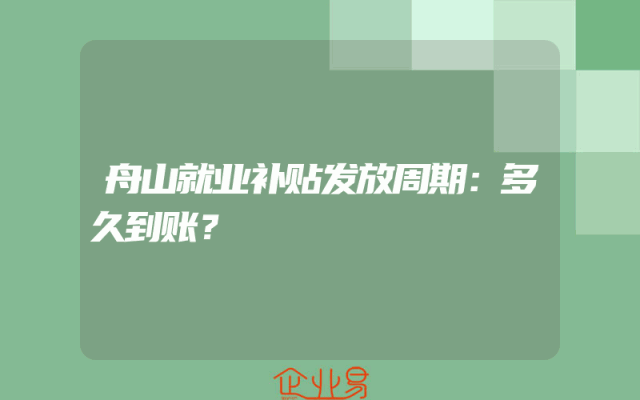 - 舟山就业补贴发放周期解析:多久到账?补贴政策概述在当前社会经济环境下,为了鼓励就业与促进经济发展,舟山市政府出台了一系列的就业补贴政策。这些补贴政策旨在帮助劳动者顺利就业,为企业招聘提供支持,同时也鼓励创业者积极创业。补贴发放周期详