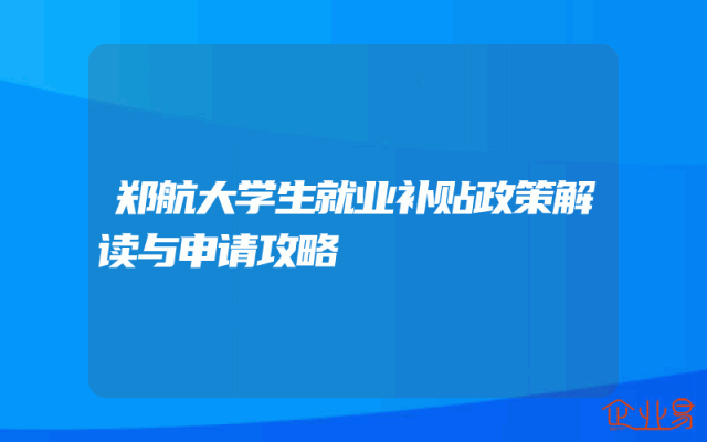 - 郑航大学生就业补贴政策解读与申请攻略一、郑航大学生就业补贴政策解读为了鼓励和支持大学生积极就业,郑航大学积极响应国家政策,推出了一系列大学生就业补贴政策。这些政策旨在减轻大学生在就业过程中的经济压力,帮助他们顺利步入社会。首先,郑航大学的就