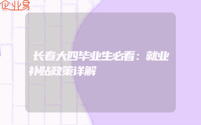 - 长春大四毕业生必看:就业补贴政策详解一、就业补贴政策概览作为长春的大四毕业生,了解当前的就业补贴政策对于顺利步入社会、减轻就业压力至关重要。国家及地方政府为了鼓励毕业生积极就业、支持人才培养,推出了一系列补贴政策。这些政策涵盖了就业创业的不
