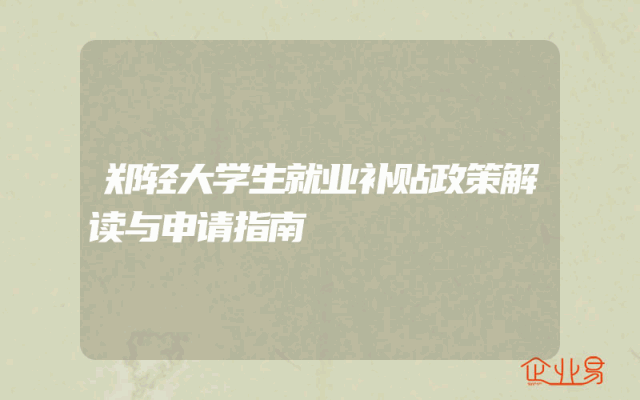 - 郑轻大学生就业补贴政策解读与申请指南一、政策解读为支持大学生顺利就业,郑轻地区实施了一系列就业补贴政策。这些政策旨在激励大学生积极投身于社会各领域,缓解就业压力,促进人才流动。补贴政策的范围涵盖了各个方面,包括求职过程中的交通、住宿、面试费