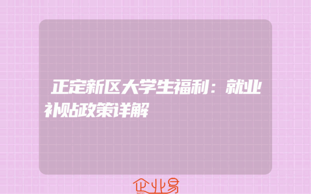 - 正定新区大学生福利:就业补贴政策详解