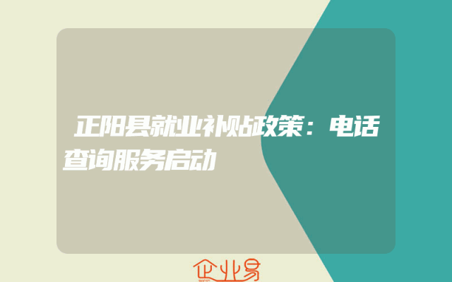 - 正阳县就业补贴政策:电话查询服务启动