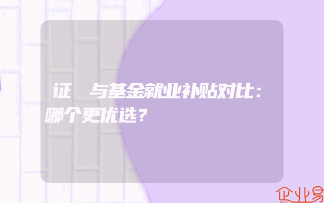 - 证劵与基金就业补贴对比:哪个更优选?