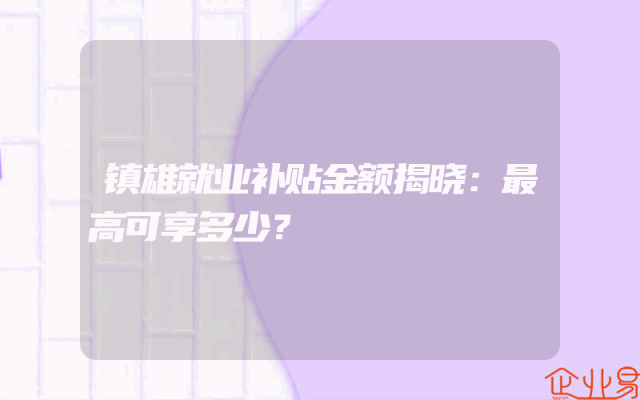 - 镇雄就业补贴金额揭晓:最高可享多少?