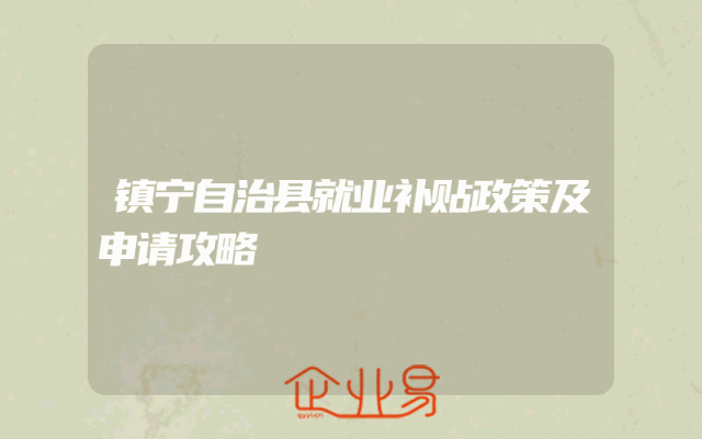 - 镇宁自治县就业补贴政策及申请攻略