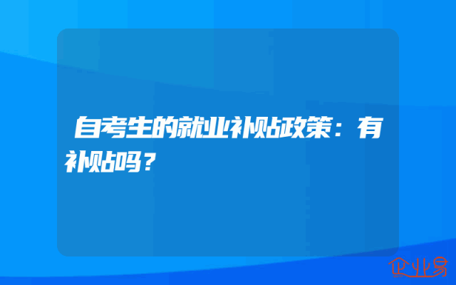 - 自考生的就业补贴政策:有补贴吗?