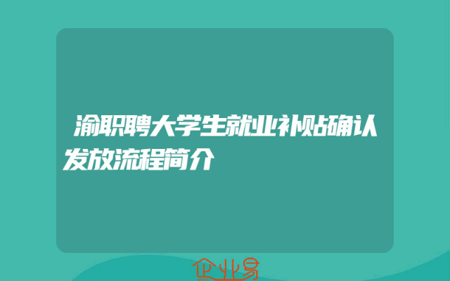 - 渝职聘大学生就业补贴确认发放流程简介