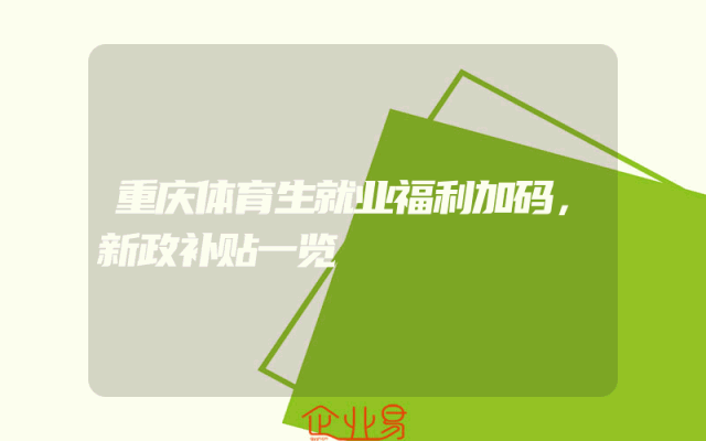 - 重庆体育生就业福利加码,新政补贴一览