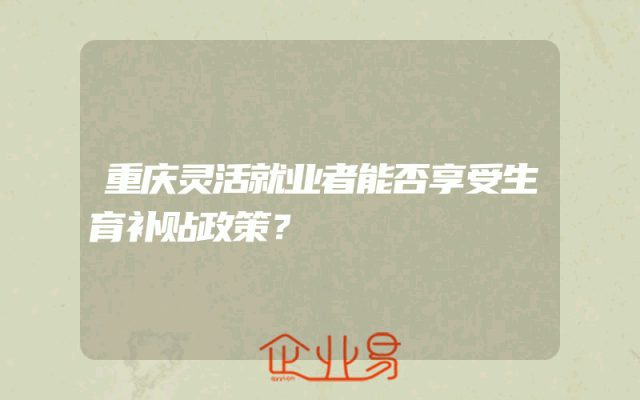 - 重庆灵活就业者能否享受生育补贴政策?一、重庆市的生育补贴政策概述近年来,为了鼓励生育并保障家庭福利,重庆市推出了一系列生育补贴政策。这些政策主要针对有新生儿出生的家庭,以提供经济支持和减轻家庭负担。政策涵盖了生育医疗费用补贴、生育津贴以及相