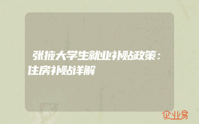 - 张掖大学生就业补贴政策:住房补贴详解
