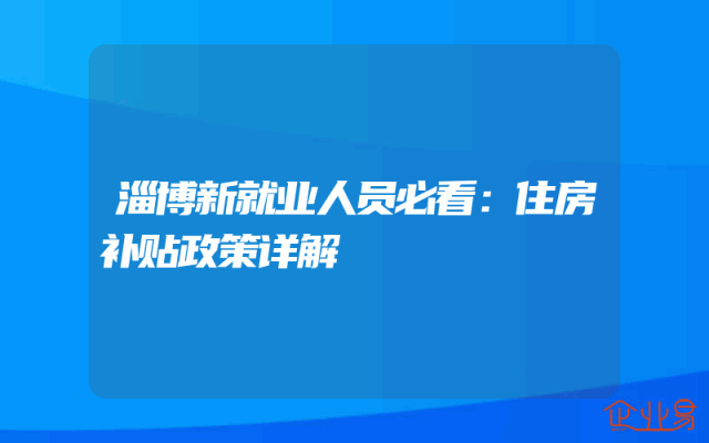 - 淄博新就业人员必看:住房补贴政策详解