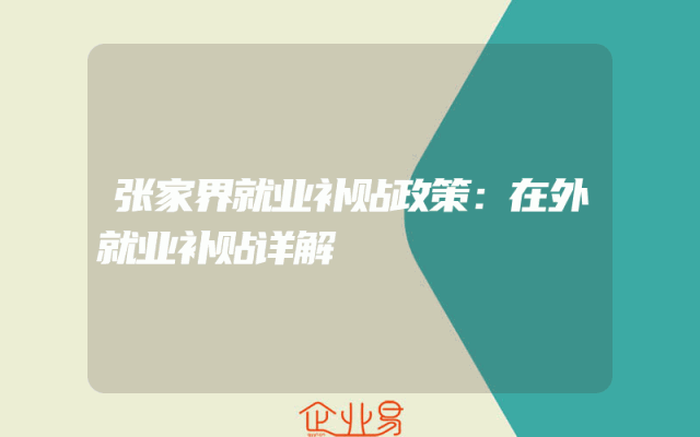- 张家界就业补贴政策:在外就业补贴详解一、张家界市对外就业补贴政策概述为了鼓励张家界市的劳动者积极外出就业,拓宽就业渠道,张家界市政府制定了一系列的就业补贴政策。这些政策针对在外就业的市民,提供了包括经济补助、培训支持以及就业指导等在内的多种