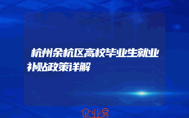 - 杭州余杭区高校毕业生就业补贴政策详解