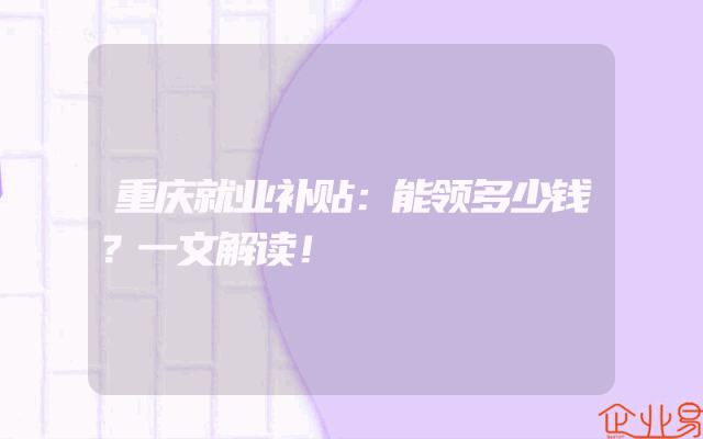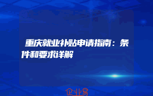 - 重庆就业补贴注册问题解答与解决指南了解重庆就业补贴政策重庆市为了鼓励市民积极就业,出台了一系列的就业补贴政策。这些政策对于求职者特别是新入职的劳动者来说,是一大福音。就业补贴政策旨在减轻求职者的经济压力,提高劳动者的积极性和稳定性。为了享受