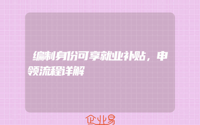 - 编制身份可享就业补贴,申领流程详解