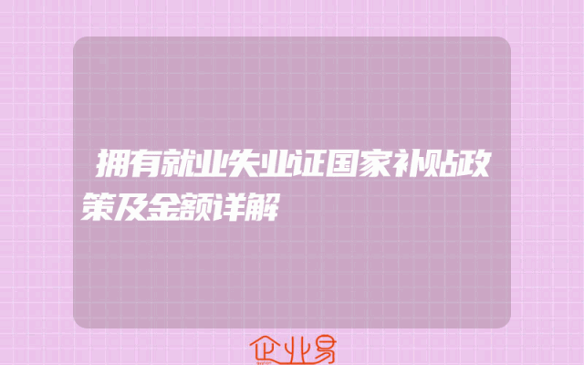 - 拥有就业失业证国家补贴政策及金额详解