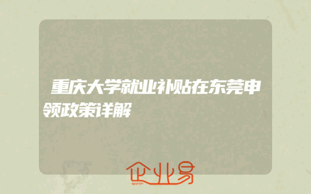 - 重庆大学就业补贴在东莞申领政策详解