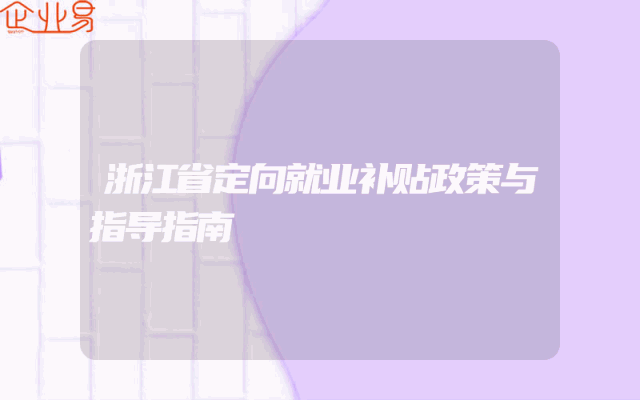 - 浙江省定向就业补贴政策解析与指导指南一、浙江省定向就业补贴政策概述近年来,随着经济社会发展,浙江省高度重视就业工作,制定并实施了一系列的就业政策。其中,定向就业补贴政策是为了促进特定群体(如高校毕业生、退役军人等)的就业而推出的一项重要措施