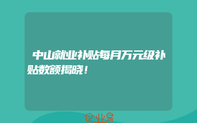 - 中山就业补贴每月万元级补贴数额揭晓!