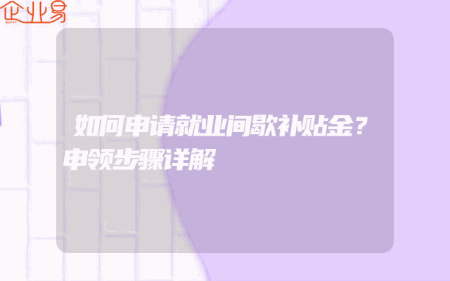 - 如何申请就业间歇补贴金?申领步骤详解一、了解就业间歇补贴金政策就业间歇补贴金是一项针对就业困难群体的政策支持,其目的是鼓励并帮助个人在职业发展过程中顺利过渡。首先,我们需要全面了解这项政策的具体内容,包括补贴的对象、补贴的标准、申请的条件等