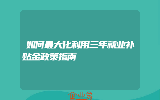 - 如何最大化利用三年就业补贴金政策指南一、了解政策内容与细节想要最大化利用三年就业补贴金政策,首先需要对政策的内容与细节有深入的了解。政策的具体条款、补贴金的发放标准、申请流程以及使用范围等都是我们需要关注的重点。只有充分了解政策,才能确保我