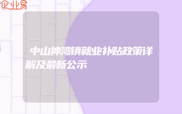 - 中山神湾镇就业补贴政策详解及最新公示
